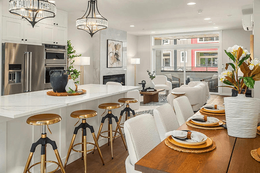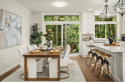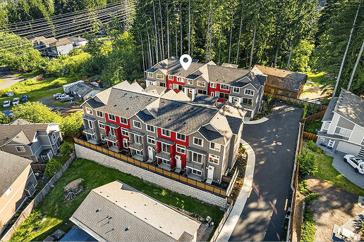 Blends suburban appeal with urban accessibility. Residents enjoy quick access to I‑405 and downtown Bothell, vibrant dining and retail, top ranked Northshore schools, and parks along the Sammamish River Valley. Inside the gated community, modern townhomes pair luxury finishes with smart functionality, including quartz kitchens, dedicated workspaces, and private fenced backyards.